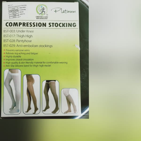 Compression stocking below knee very reliable solution for enhancing circulation.